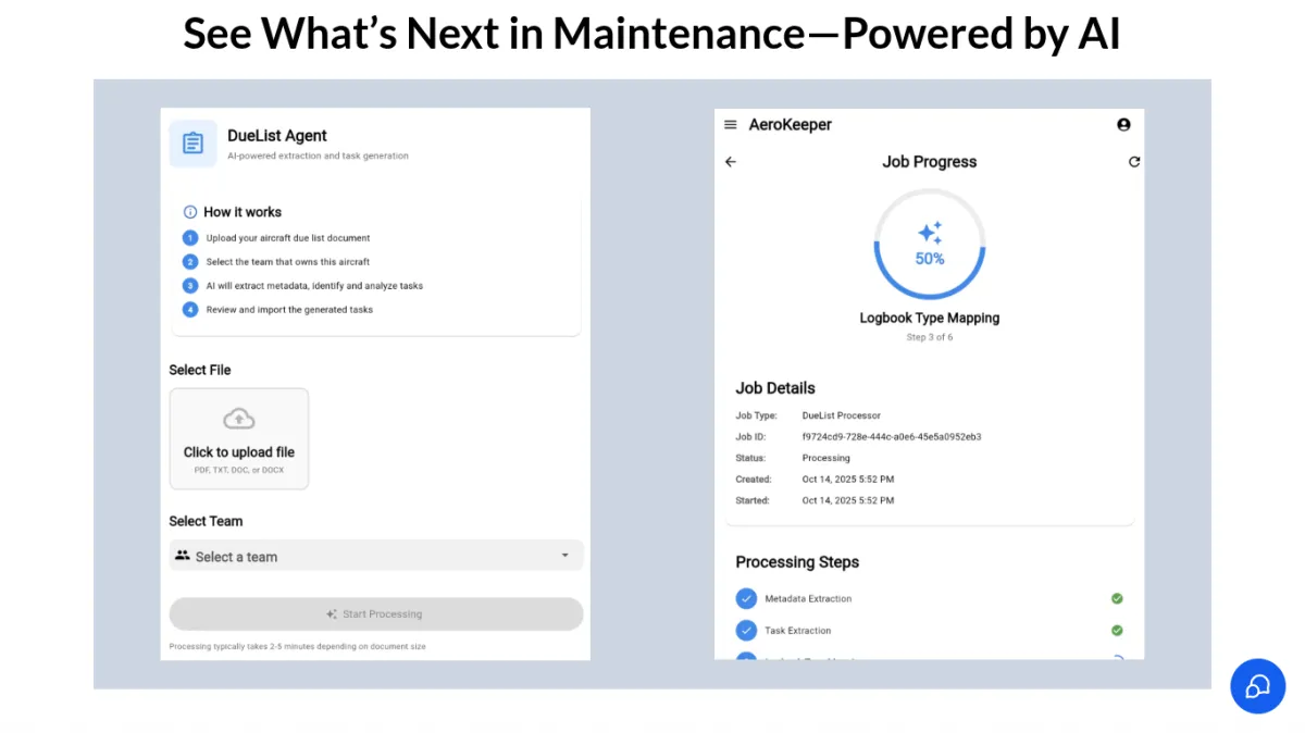 AeroKeeper is an AI-powered aviation maintenance platform built by MRO experts to streamline work orders, predict issues, and keep aircraft mission-ready.